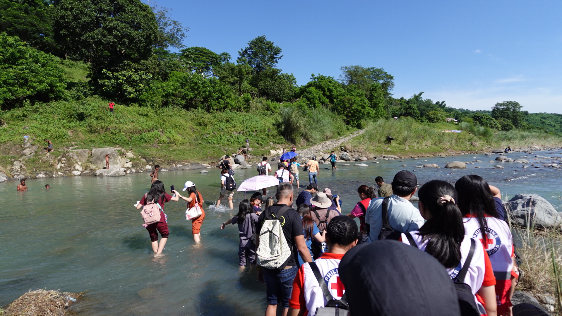 Volunteers crossed the river to reach the Aeta community of Sitio Manabayukan.