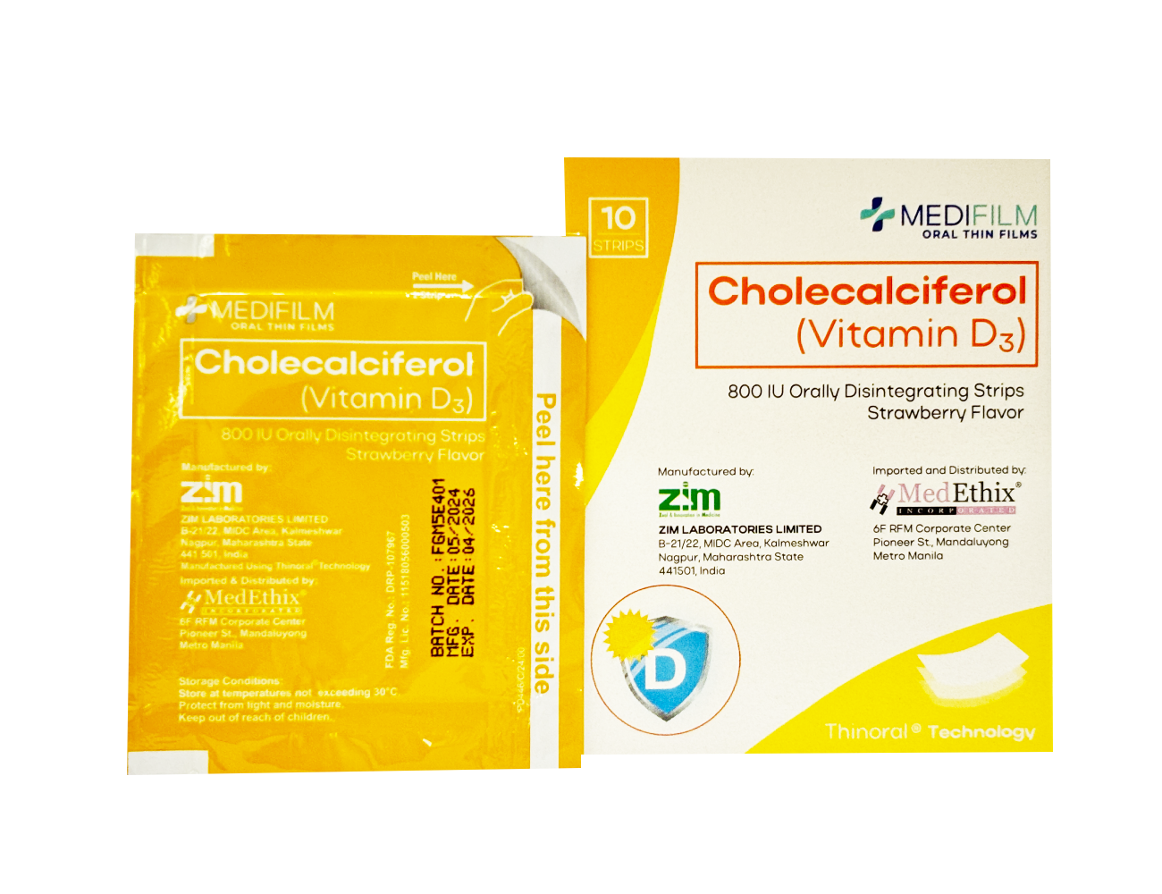 Each orally disintegrating strip contains: Cholecalciferol 800 I.U.
